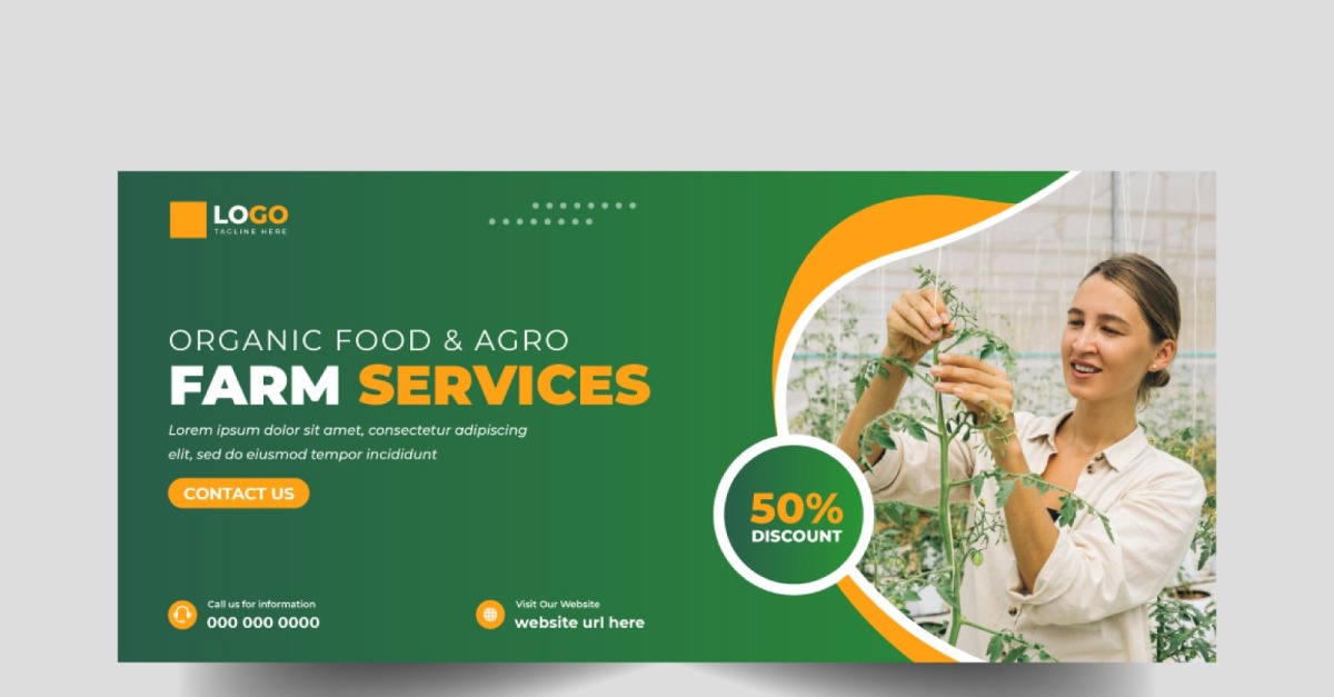 Promote your agro farming business with this professionally designed social media Facebook cover banner template. Perfect for agricultural brands, organic farms, or eco-friendly promotions, this banner is crafted with vibrant earthy tones, clean typography, and nature-inspired visuals to attract attention and communicate trust. Fully customizable in Adobe Photoshop or Illustrator, …