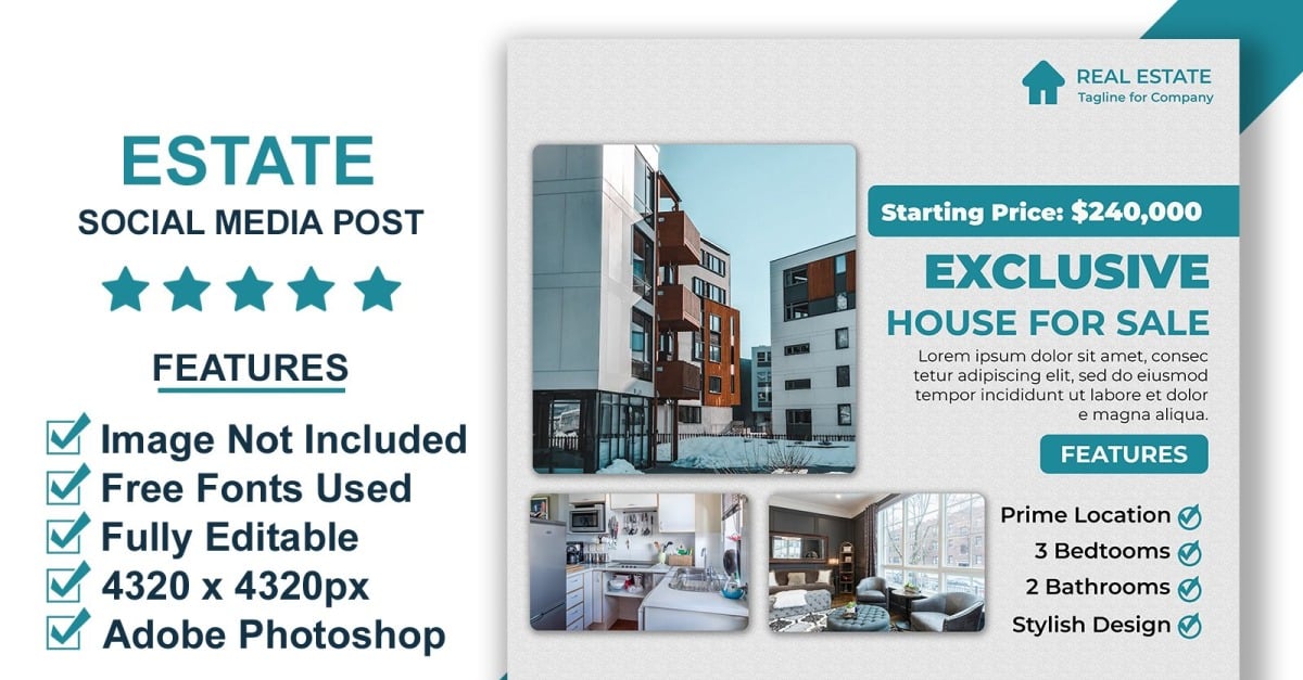 Stylish Real Estate Social Media Banner Template for Modern Property Agencies PSD This stylish real estate banner template is created for modern property agencies looking to build a strong presence on social media. The design blends professionalism with trend-forward elements, allowing agents to advertise apartments, villas, or homes in an …
