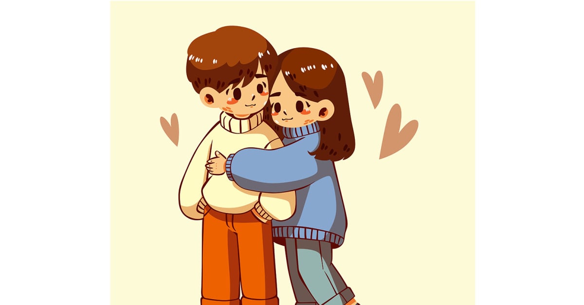 File Included : AI (CS6)EPS10Image 5000 x 5000 (px) **Explore a touching illustration where forgiveness and introspection are pictured as a cartoon boy and girl hugging in a sweet, charming scene** **The illustration is a cartoon featuring a boy and girl hugging each other, conveying themes of forgiveness and affection, …
