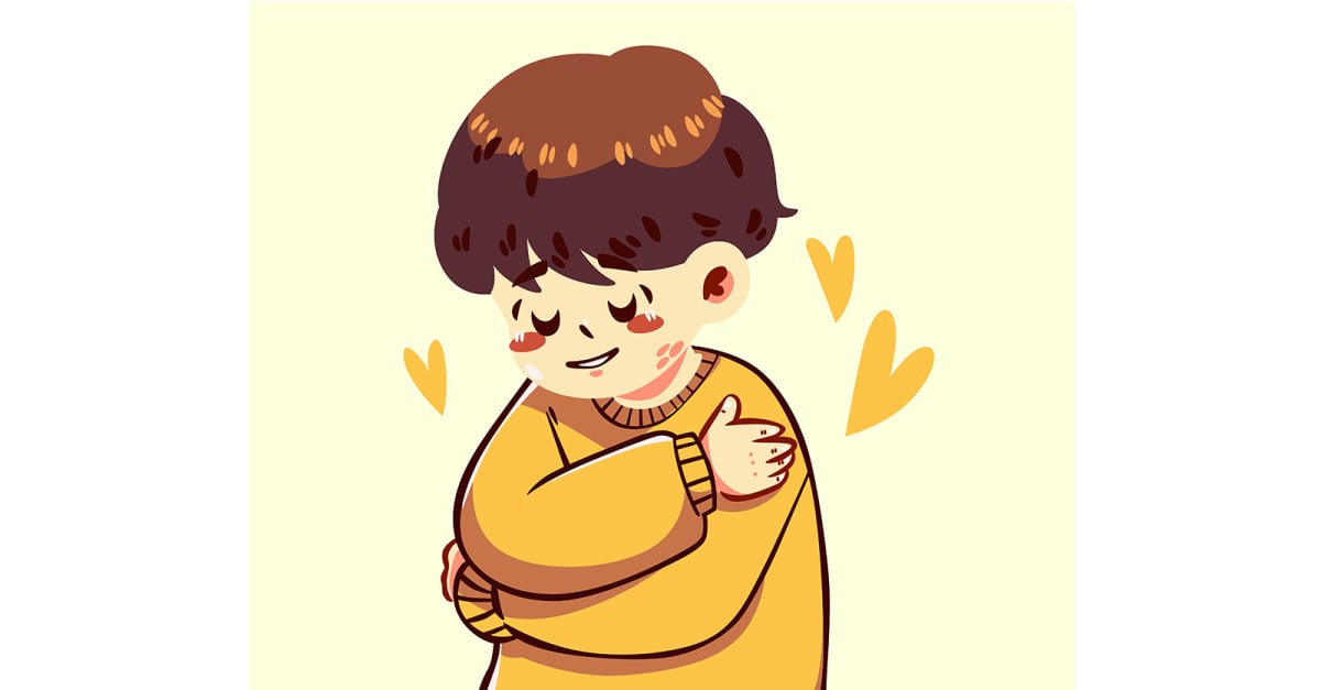 File Included : AI (CS6)EPS10Image 5000 x 5000 (px) **Discover a heartwarming illustration of a cartoon boy with his arms crossed, symbolizing forgiveness, self-hug, and introspection** **The illustration features a cartoon boy with his arms crossed, embodying a sense of self-reflection or determination, themes of forgiveness and self-hug**