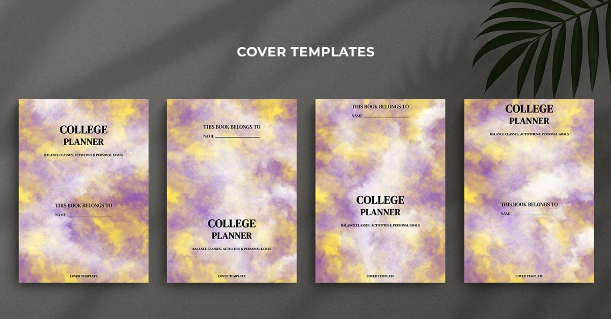 Read More »Editable College Planner Cover Template Set – Purple Yellow Watercolor Brushed Design
