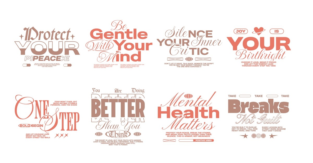 Mental Health Urban Typography T-shirt Designs Bundle Vol. 2 – File included : 8 AI, EPS, SVG, and PNG File – Ready-to-Print – 300 DPI for Printing – 100% Vector graphic in eps and svg file – Suitable For Digital Printing / Sublimation & Screen Printing – Suitable for t-shirts, …