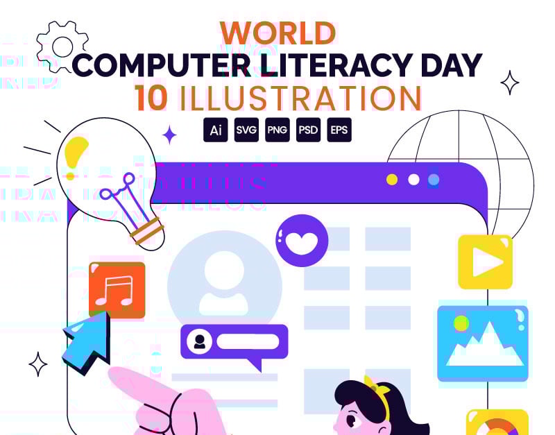 World Computer Literacy Day Vector Illustration on December 2, Featuring Books, Globe, and Media Equipment to Promote Education in a Flat Background Suitable for Poster, Web Banner, Brochure, Landing Page and Others Background Template Features: – Fully editable vector files, easy to edit the object, color and background – Include …